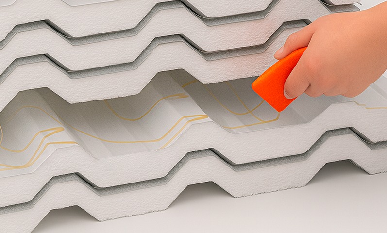 Colas para telhas com isolamento em EPS, conhecidas como “Telhas sanduíches”.
